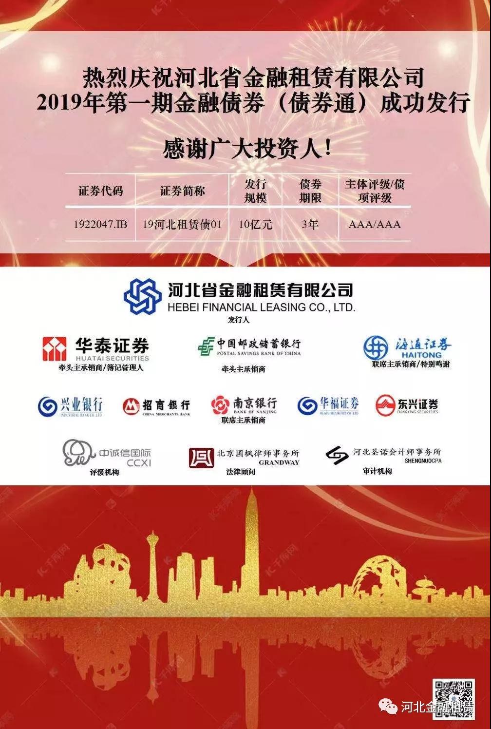 近年來,河北金租積極推動(dòng)融資租賃主業(yè)發(fā)展,加強(qiáng)產(chǎn)融結(jié)合,不斷提高業(yè)務(wù)專業(yè)能力,在清潔能源、節(jié)能環(huán)保、醫(yī)療健康、汽車金融等業(yè)務(wù)領(lǐng)域逐漸積累競(jìng)爭(zhēng)優(yōu)勢(shì)。同時(shí),積極開拓各類創(chuàng)新融資方式,經(jīng)連續(xù)四年發(fā)行金融債,并在綠色金融債、資產(chǎn)證券化等融資創(chuàng)新方面享有良好口碑,經(jīng)中誠(chéng)信國(guó)際信用評(píng)級(jí)有限責(zé)任公司評(píng)定,公司主體信用評(píng)級(jí)已連續(xù)兩年保持AAA。