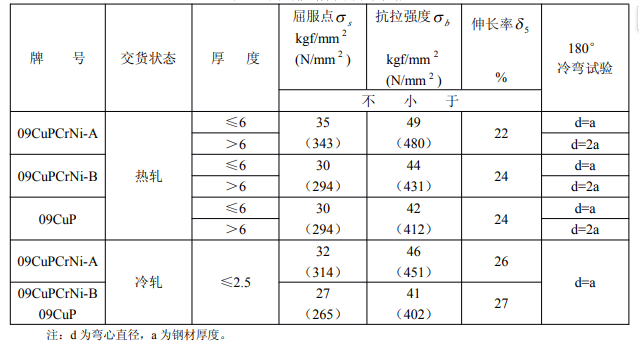 耐候鋼之高耐候結構鋼化學成分及力學性能