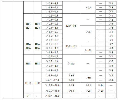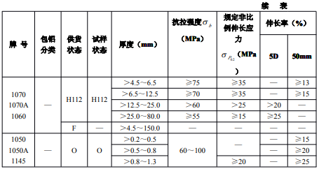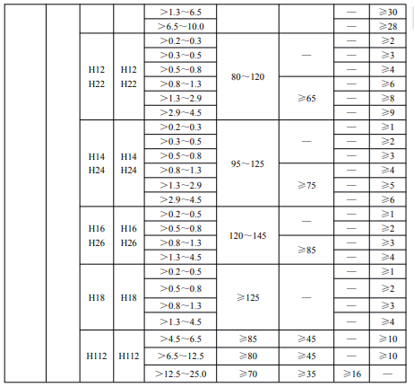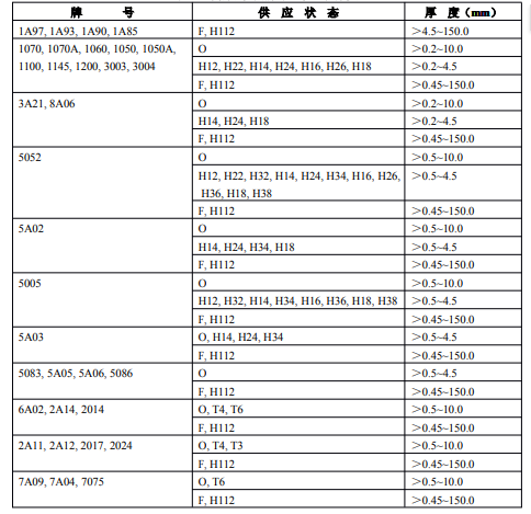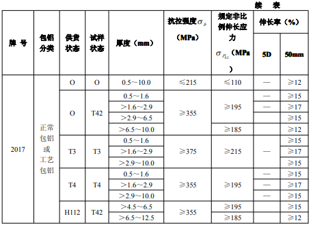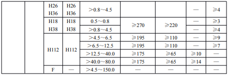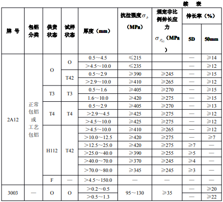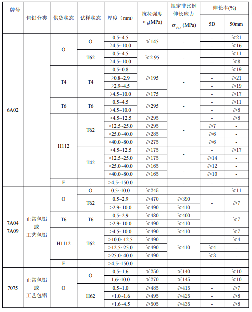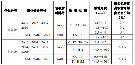 ?、诤穸刃∮诘扔?.7mm經(jīng)鹽浴爐生產(chǎn)的退火板材,只能供應(yīng)寬度小于或等于1200mm,長度小于或等于4000mm的板材。包覆層需包鋁的板材應(yīng)進(jìn)行雙面包覆,其包覆材料牌號及軋制后的包覆層厚度應(yīng)符合表3的規(guī)定。