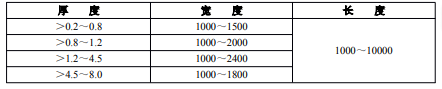 表2厚度對應(yīng)的寬度及長度規(guī)格