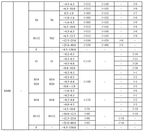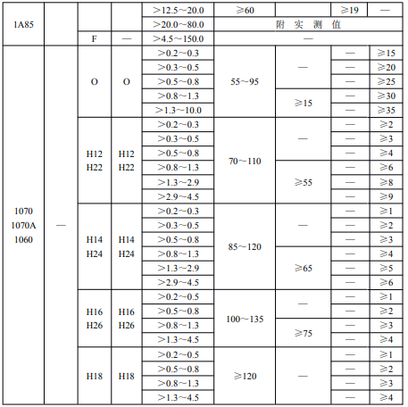 注:①1070,1070A,1060,1050,1050A,1100,1145,1200,3003,3004,3A21,8A06可供應(yīng)寬度小于400mm的板材,但尺寸偏差按400mm寬度的板材檢查,當(dāng)供應(yīng)寬度為大于400mm至1000mm時,其尺寸偏差按1000mm寬度的板材檢查;可供應(yīng)長度小于1000mm的板材,其尺寸偏差按長度為1000mm的板材檢查。