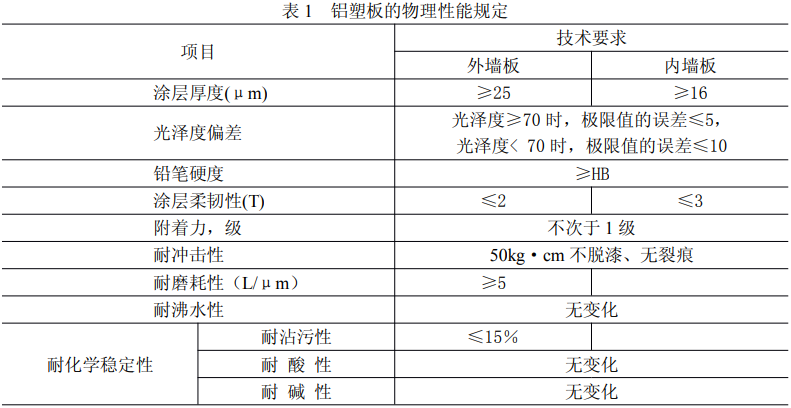 板所用鋁板厚度不小于 0.5mm,內(nèi)墻板所用鋁板厚度不小于 0.2mm。外墻板涂層應(yīng)采用 70%的氟