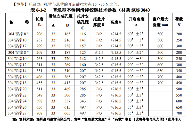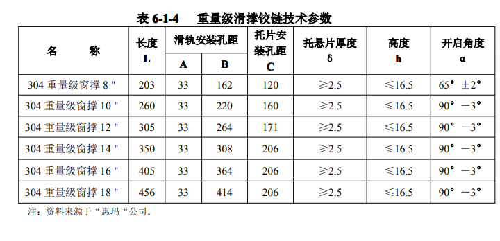 表 6-1 -3 重量級滑撐荷載能力參考表
